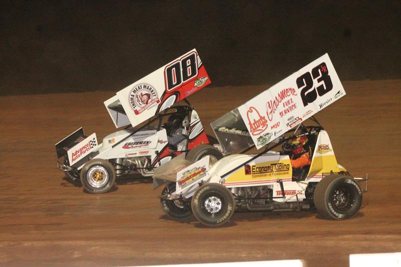 (Photo: Jack Sodeman Jr. (23JR) racing with Dan Kuriger at Lernerville Speedway earlier this season - Toni Carbone Photo Credit)